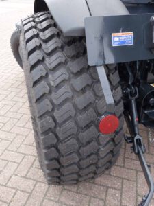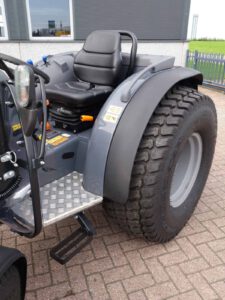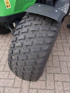 Inclusief de EXTRA BREDE GAZONWIELEN EN VOORSPATBORDEN!! Extra brede gazonwielen, met de mooie afgeronde wangen waardoor de band ook bij een lage luchtdruk niet of nauwelijks de ondergrond beschadigd, ook niet tijdens het bochtenwerk, UNIEK!