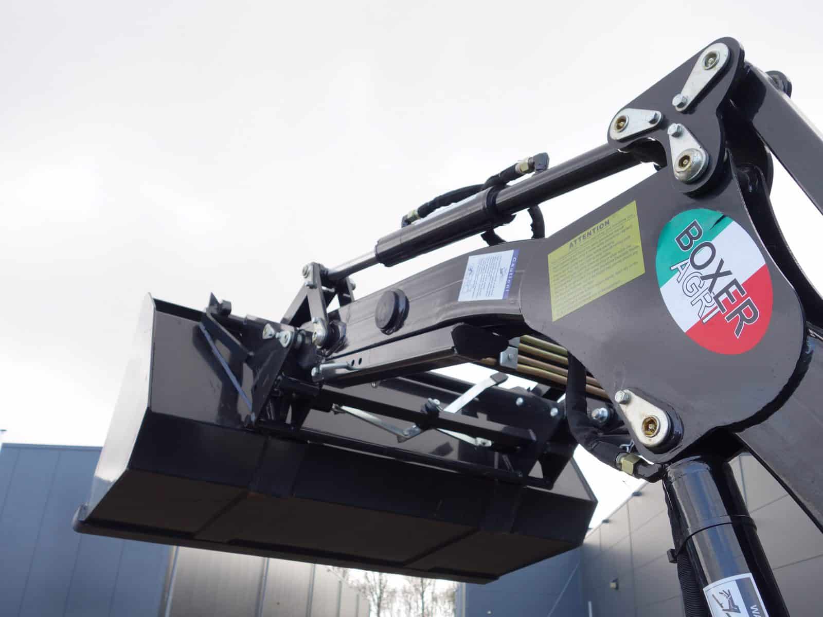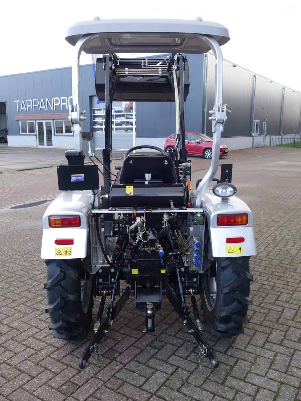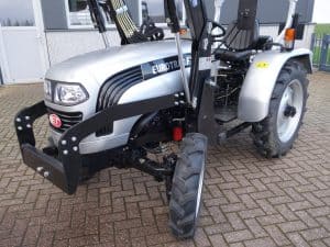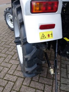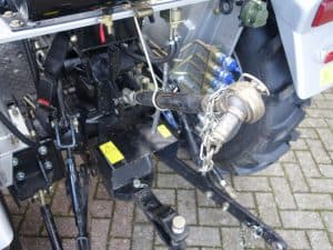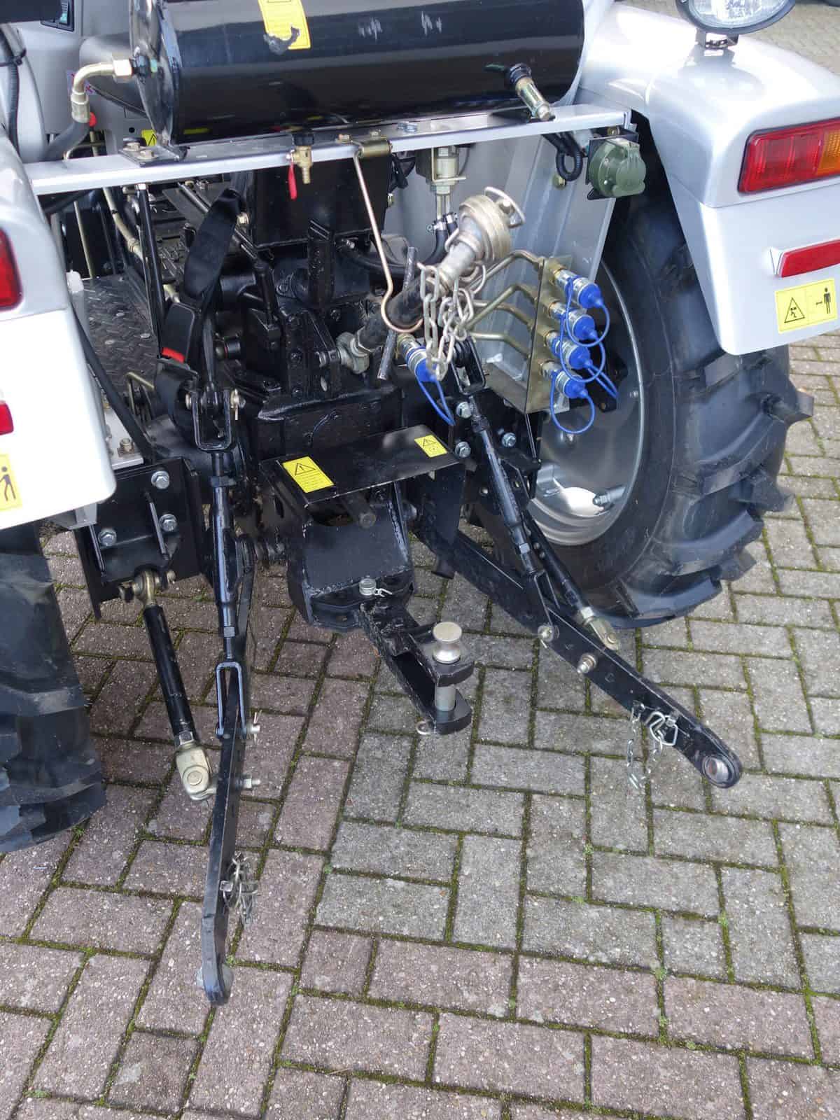 Degelijk gebouwde compacttrekker met een hoog hefvermogen aan de achterzijde.