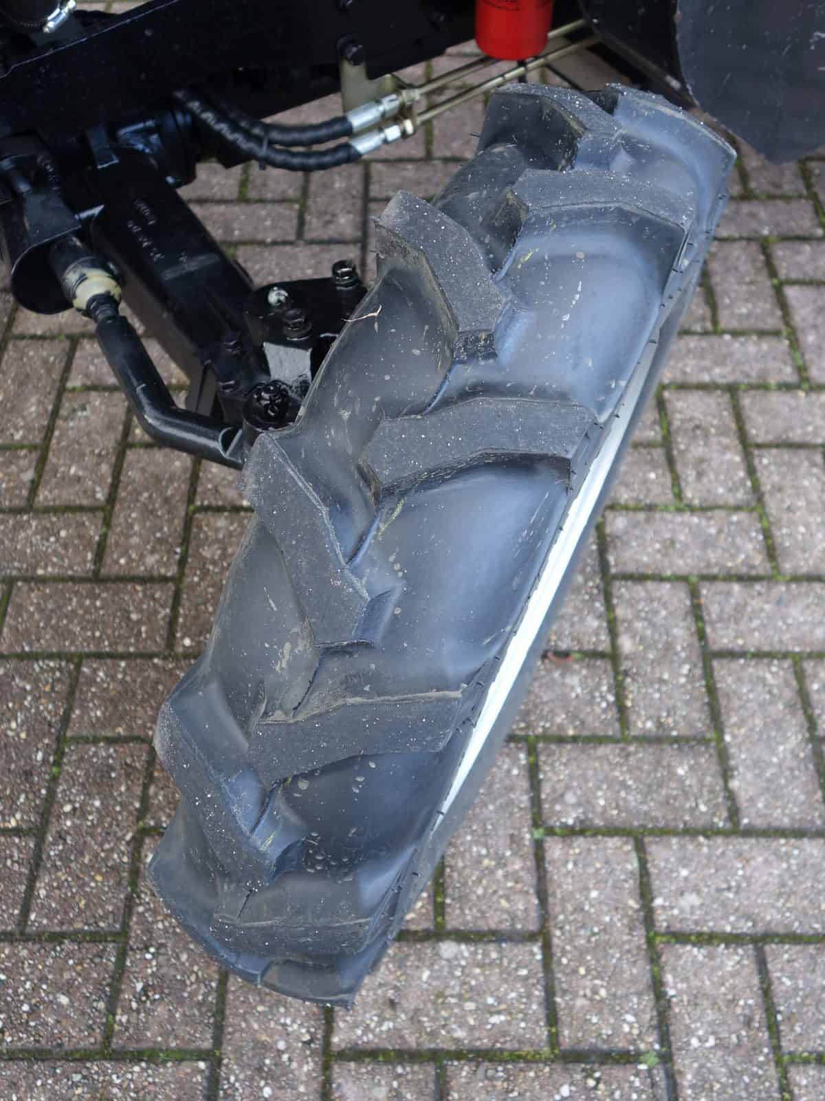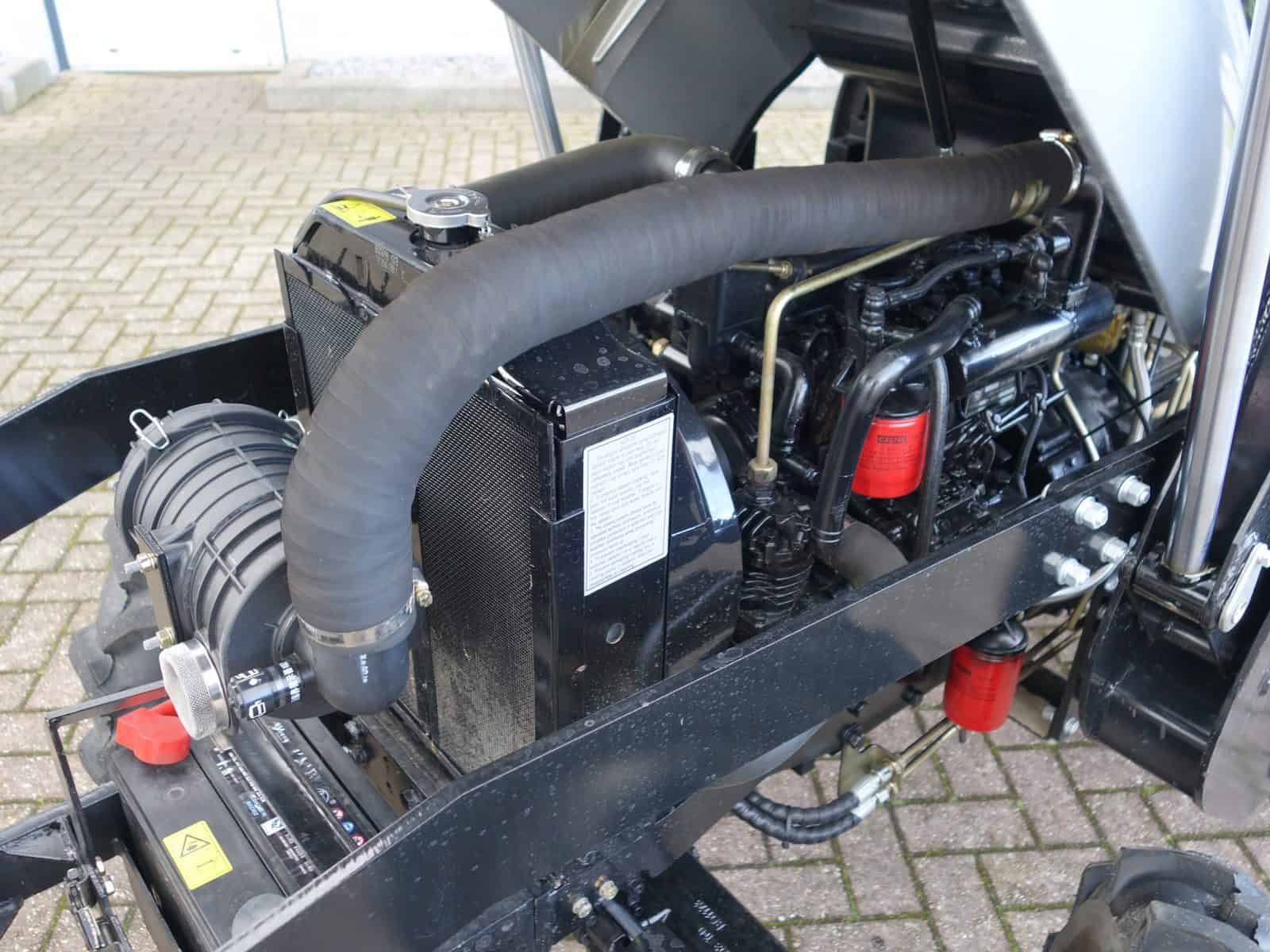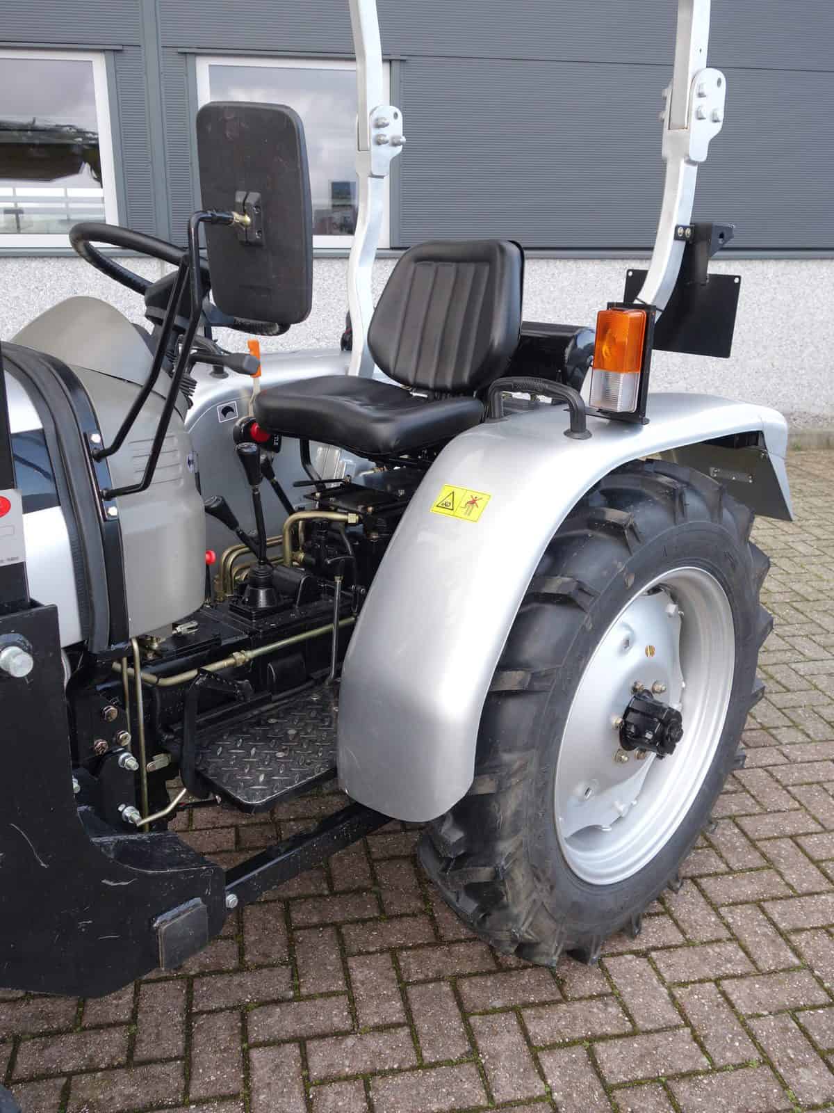 Degelijk gebouwde compacttrekker met een hoog hefvermogen aan de achterzijde.