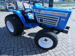Door het lage eigen gewicht van de Iseki TU1400 4wd in combinatie met de brede set gazonbanden is de druk per vierkante cm, en dus de insporing zeer gering. Trekker is dan ook bij uitstek geschikt voor werkzaamheden op het (kunst)gras, tennisbaan, gazon, weide, grind, (vers) straatwerk, etc. Uitgerust met 17 Pk sterke drie cilinder dieselmotor. 672 Draaiuren. In- en uitschakelbare 4wd, hef en aftakas aan de achterzijde. Trekker behoeft verder geen uitleg, de foto’s spreken verder voor zich.
