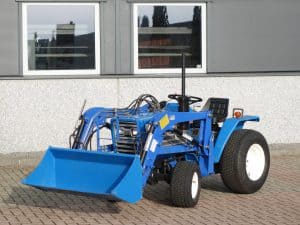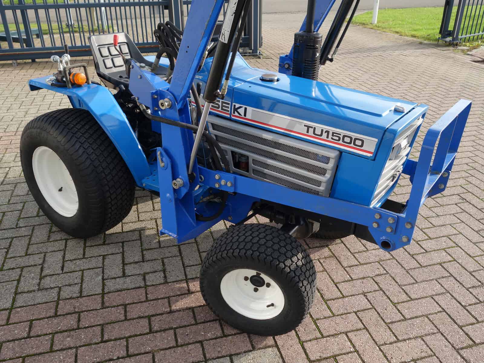 Keurige Iseki TU1500 4wd, compleet met voorlader. Voorlader is uitgevoerd met een snelwisselsysteem zodat de gehele voorlader snel van de trekker afgekoppeld kan worden. Tevens is de bak van de voorlader eenvoudig te wisselen / af te koppelen. Alle functies van de voorlader zijn met een handle te bedienen. Trekker is voorzien van 3-punts hefinrichting aan de achterzijde, compleet met topstang. Krachtige 18 Pk dieselmotor. In- en uitschakelbare 4wd. Met maar 606 draaiuren.