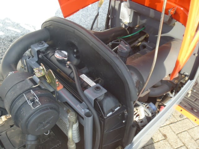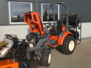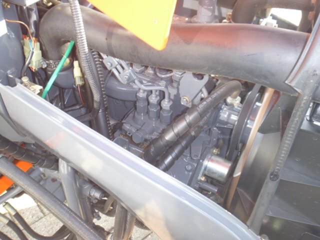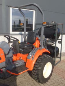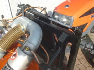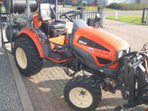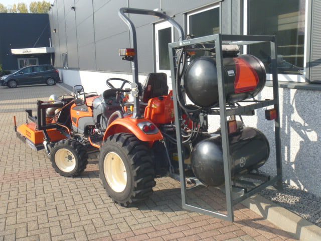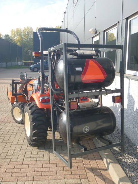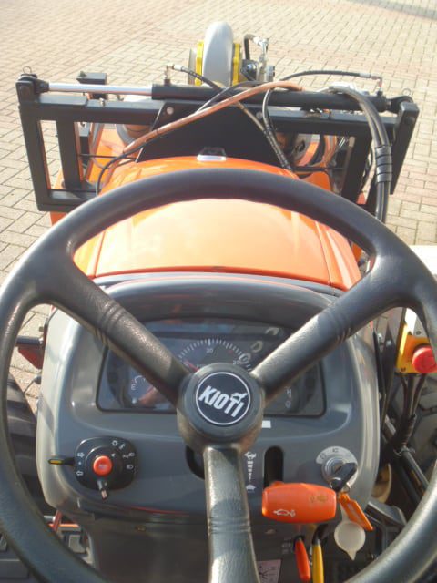 De brander is samen met deze Kioti trekker nieuw geleverd, de brander en trekker vormen een mooie set en zijn goed op elkaar afgestemd.