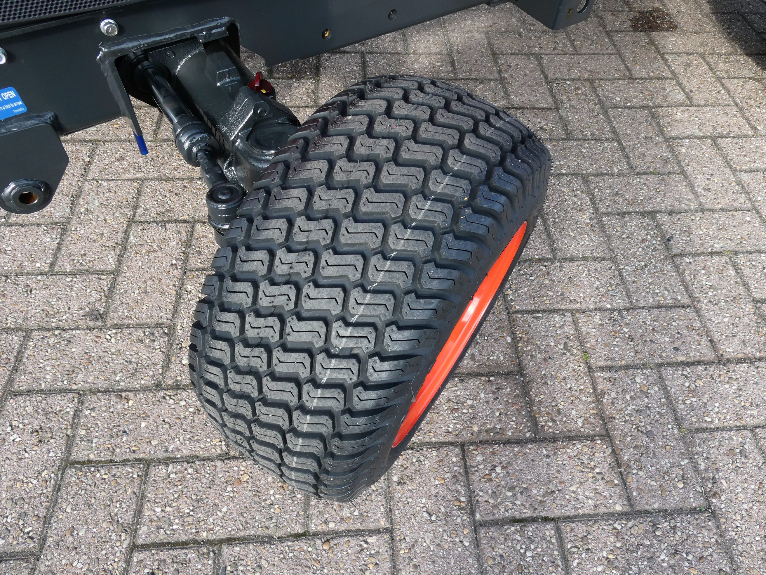 Banden naar keuze, brede gazonbanden of brede industriebanden.