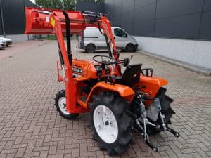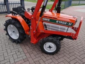 Juli aanbieding; Kubota B1502 4wd compleet met nieuwe afkoppelbare voorlader. Zeer gangbare Kubota compacttrekker, 3 cilinder diesel van 18 Pk, 4wd, zijschakeling, hef, aftakas, topstang.