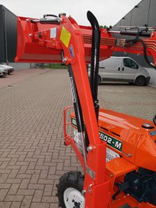 Degelijke combinatie waarbij de voorlader in zijn geheel eenvoudig af- en aangekoppeld kan worden. Dubbelwerkend hydraulisch systeem waardoor de voorlader ook druk uit kan oefenen op de ondergrond zodat de bak goed vol geschept kan worden.