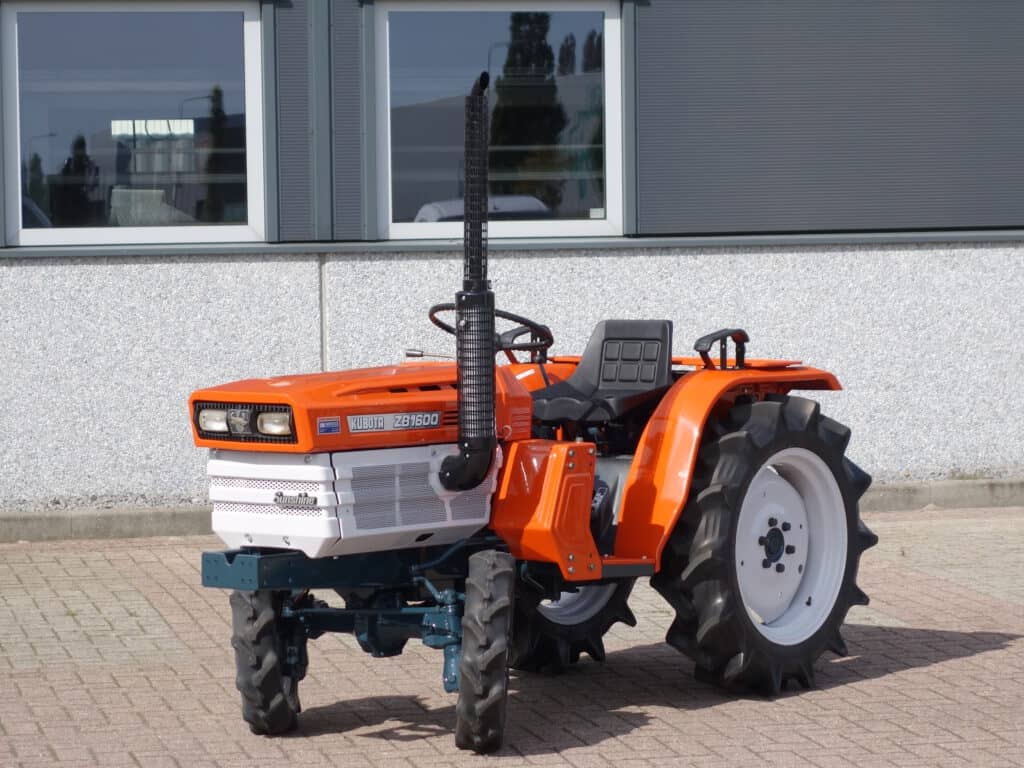 Deze B1600 serie van Kubota heeft een aantal grote pluspunten, te weten; Krachtige 19 Pk 3 cilinder dieselmotor, Grote wielen voor een grote tractie en toch maar 110cm smal!! In combinatie met de superkruipversnelling een ideale trekker om te spitten, frezen, planten, etc. Externe hydraulische aansluitingen (dubbelwerkend hydraulisch ventiel met twee aansluitingen), Een hele lijst van zaken welke deze trekker maken tot een allround inzetbare compacttrekker. Degelijke bouw, hef, aftakas aan de achterzijde. Slechts 842 draaiuren. Voorzien van servicebeurt.