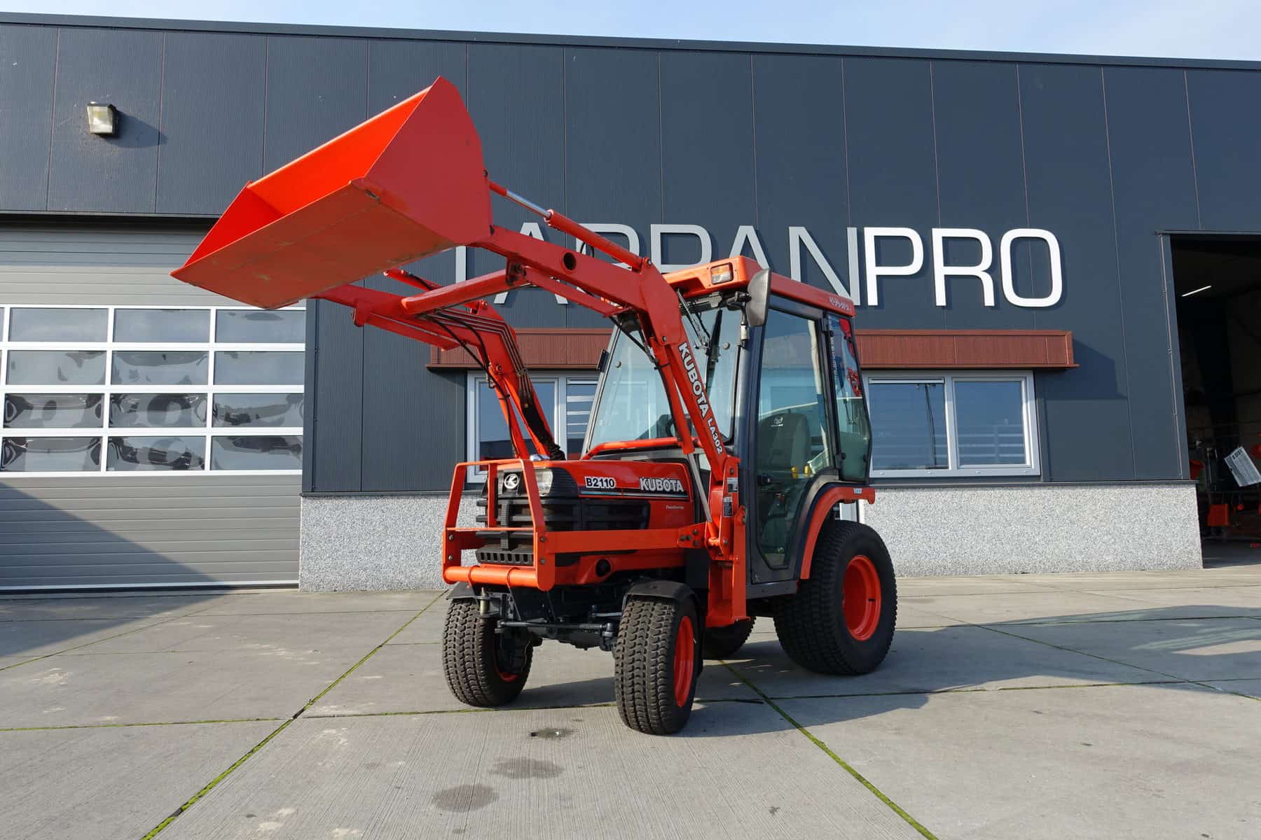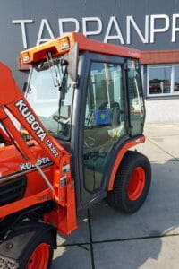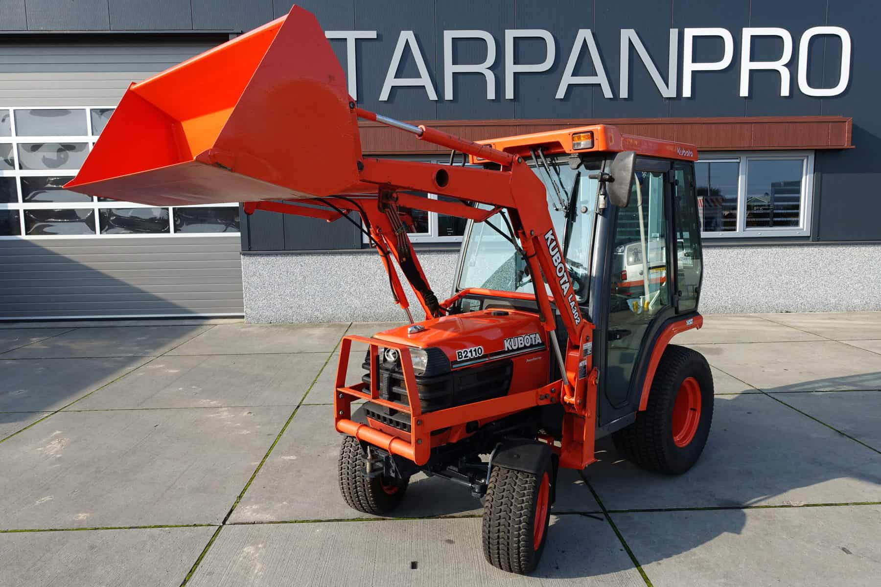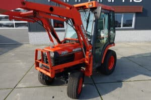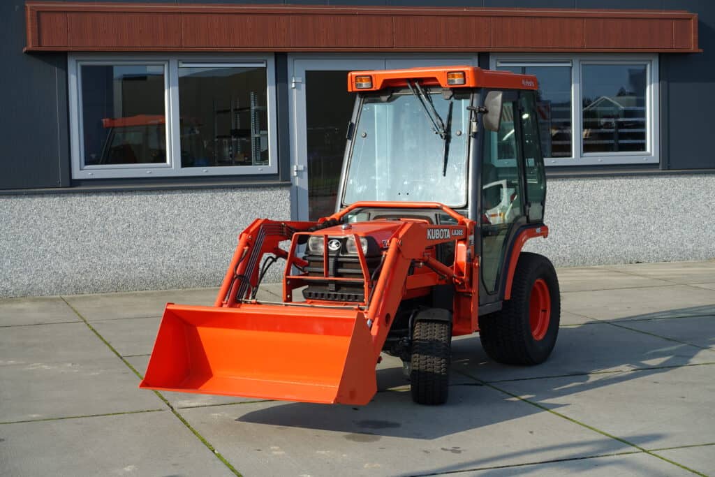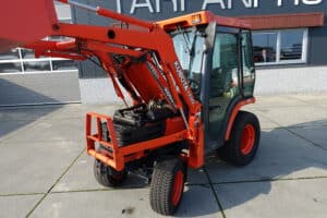 Keurige Kubota B2110 4wd met extra brede gazonwielen, voorlader, cabine en slechts 4416 draaiuren!