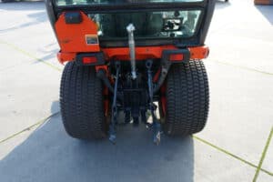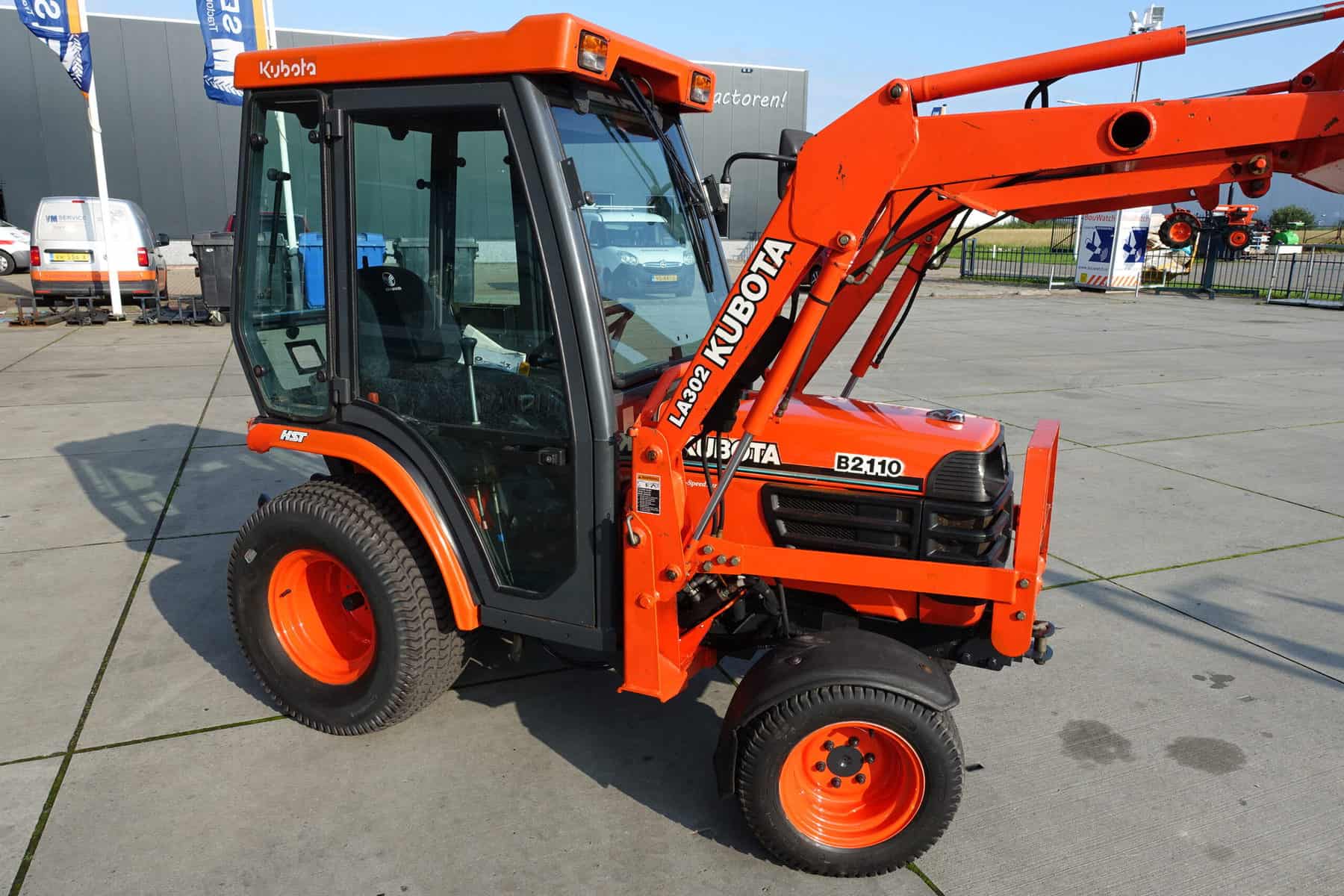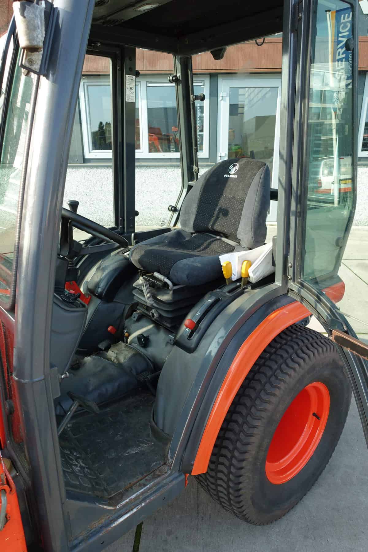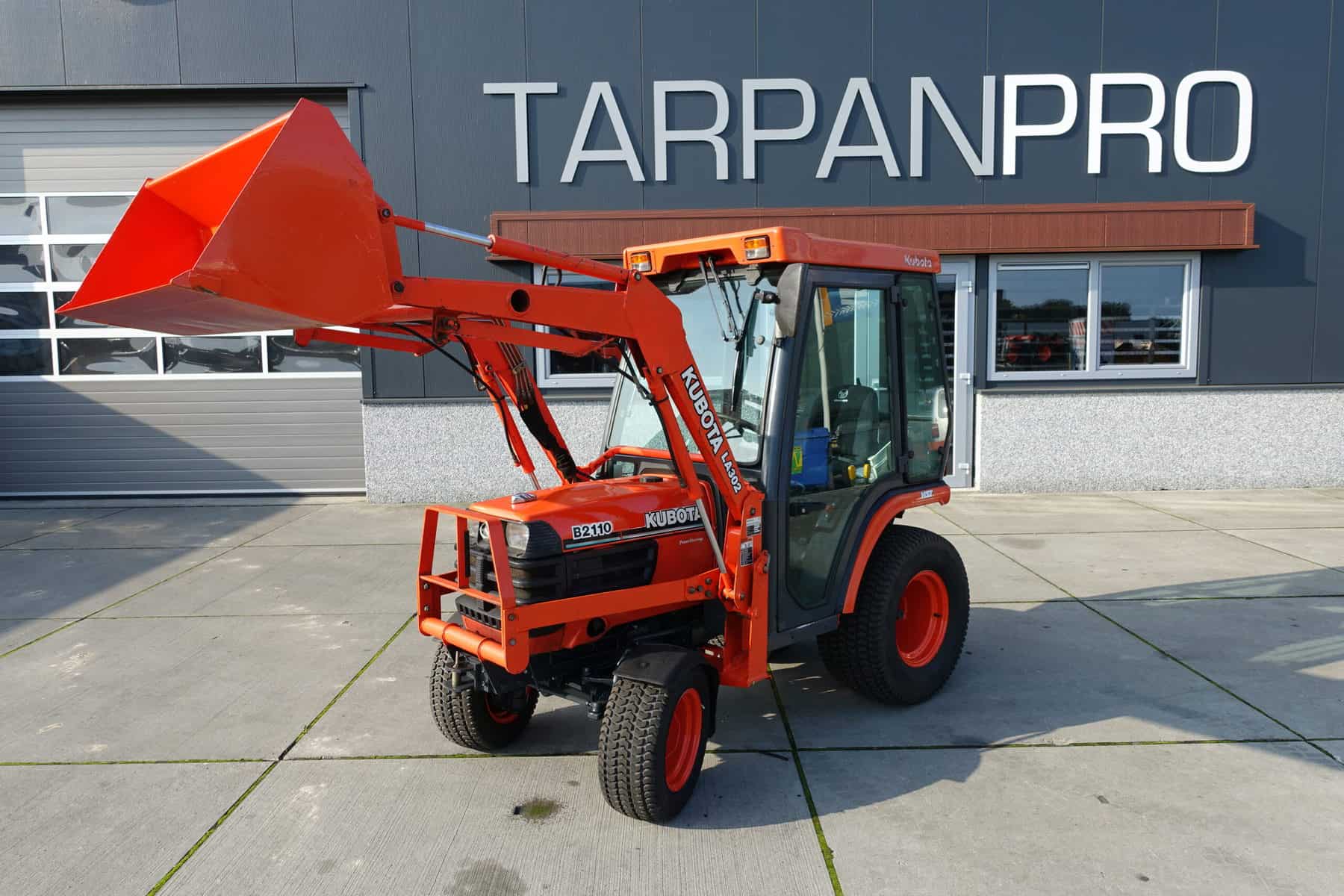 Keurige Kubota B2110 4wd met extra brede gazonwielen, voorlader, cabine en slechts 4416 draaiuren!
