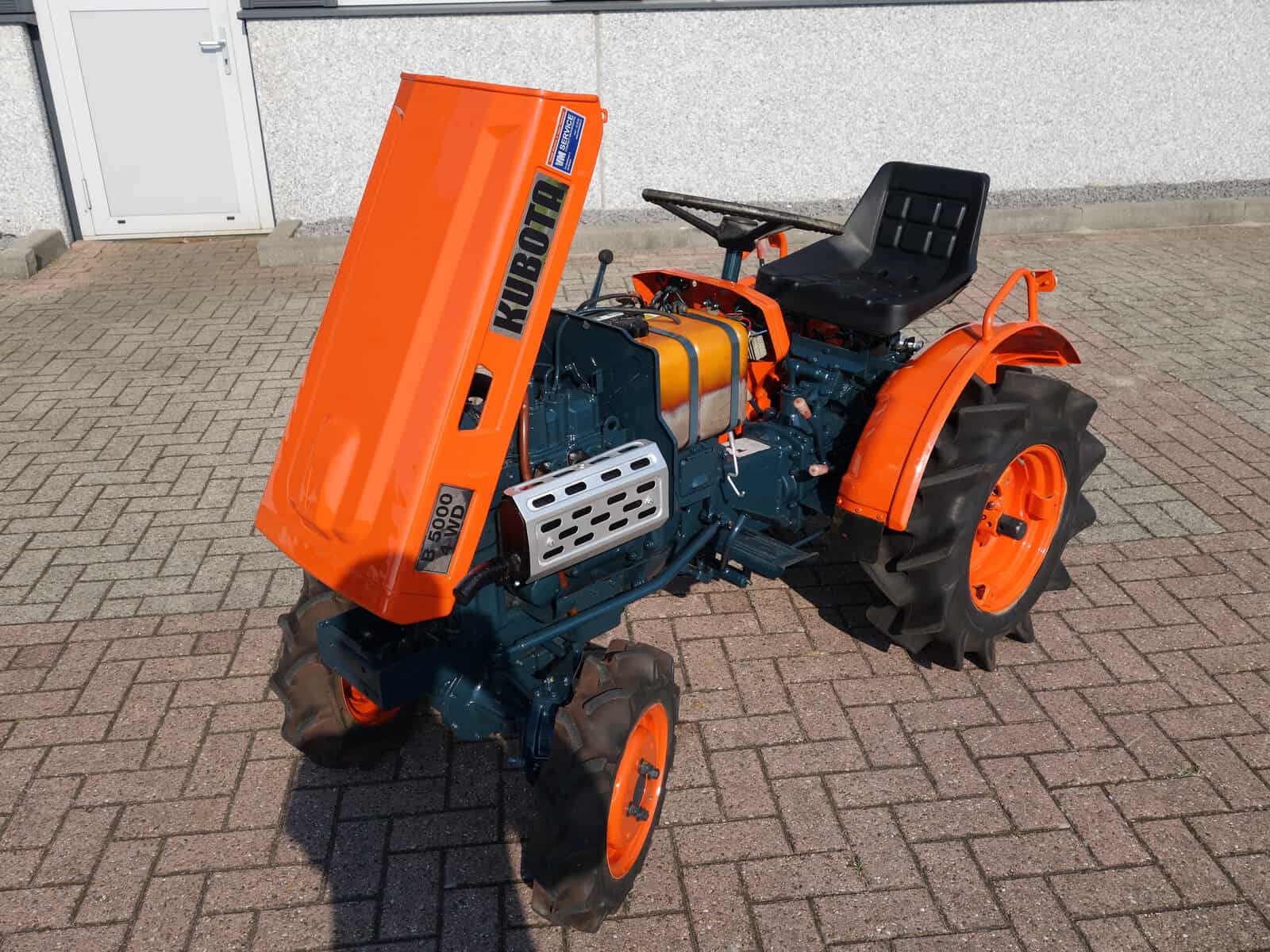 Als het nog net iets smaller moet zijn; De Kubota B5000 meet buitenwerks maar 81 cm !! Door de zeer compacte bouw zeer geschikt om toch in de kleinste hoekjes te kunnen komen. 4 x 4 uitvoering (vier wiel aangedreven) Compleet met driepuntshef en topstang. Hoge en lage gearing, Sper, Sterke 12 Pk Dieselmotor. Het geheel is zeer netjes en is voorzien van algehele servicebeurt.