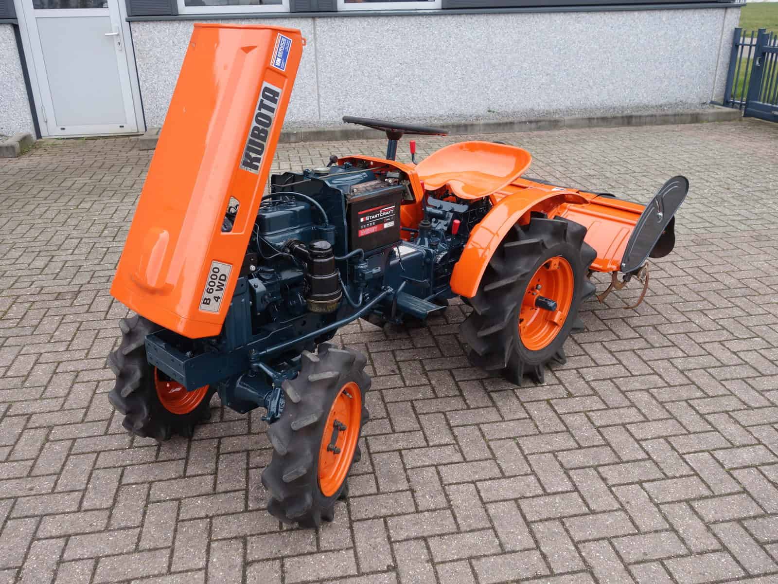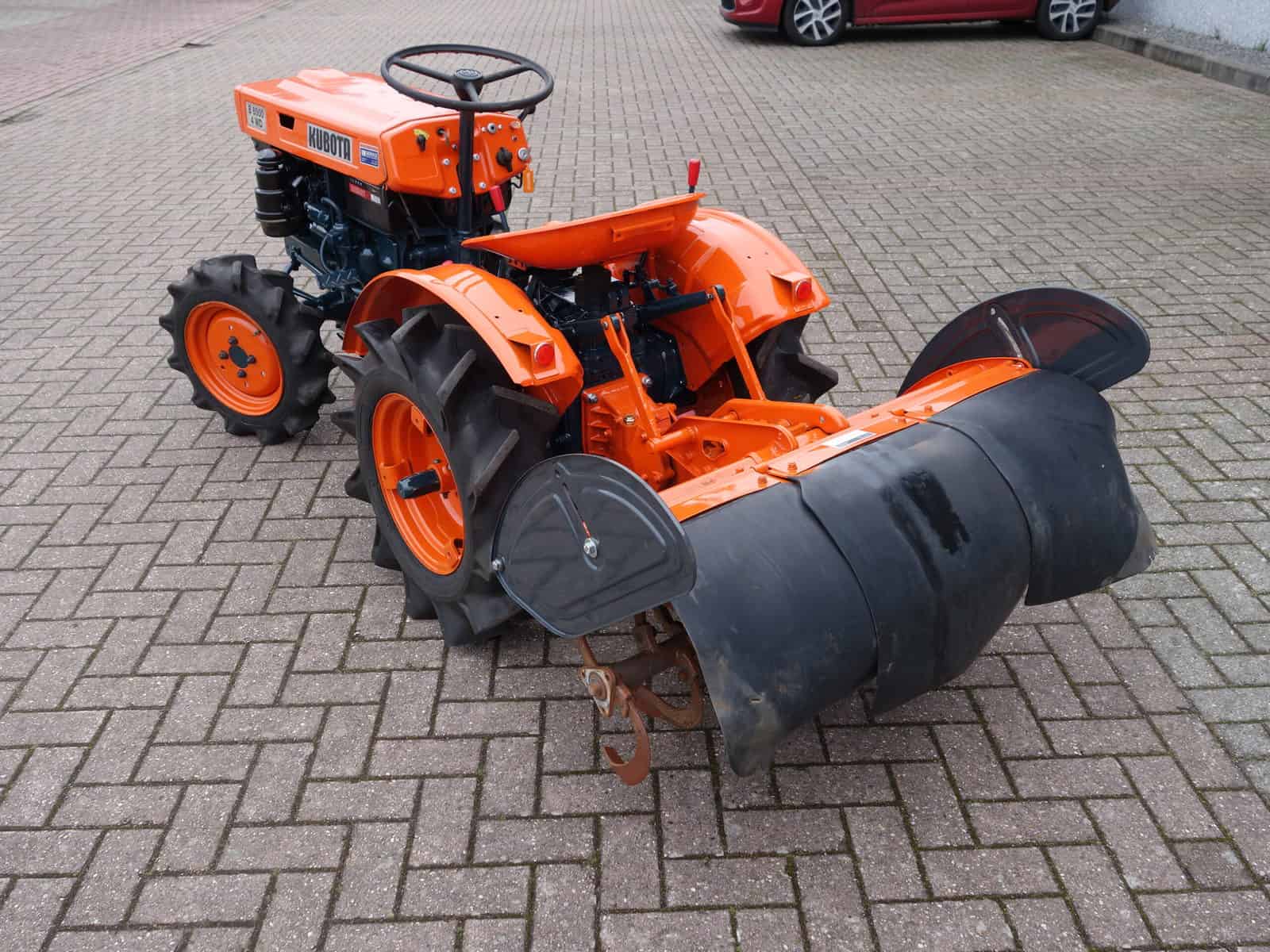 Kubota B6000 4wd compacttrekker. Geringe afmetingen, Grote prestaties, dat is wat past bij deze allround inzetbare minitrekker. Krachtige Dieselmotor, 4wd in- en uitschakelbaar, Hoge- en Lage gearing, Sper, Aftakas, enz. Compleet met 85cm brede grondfrees.