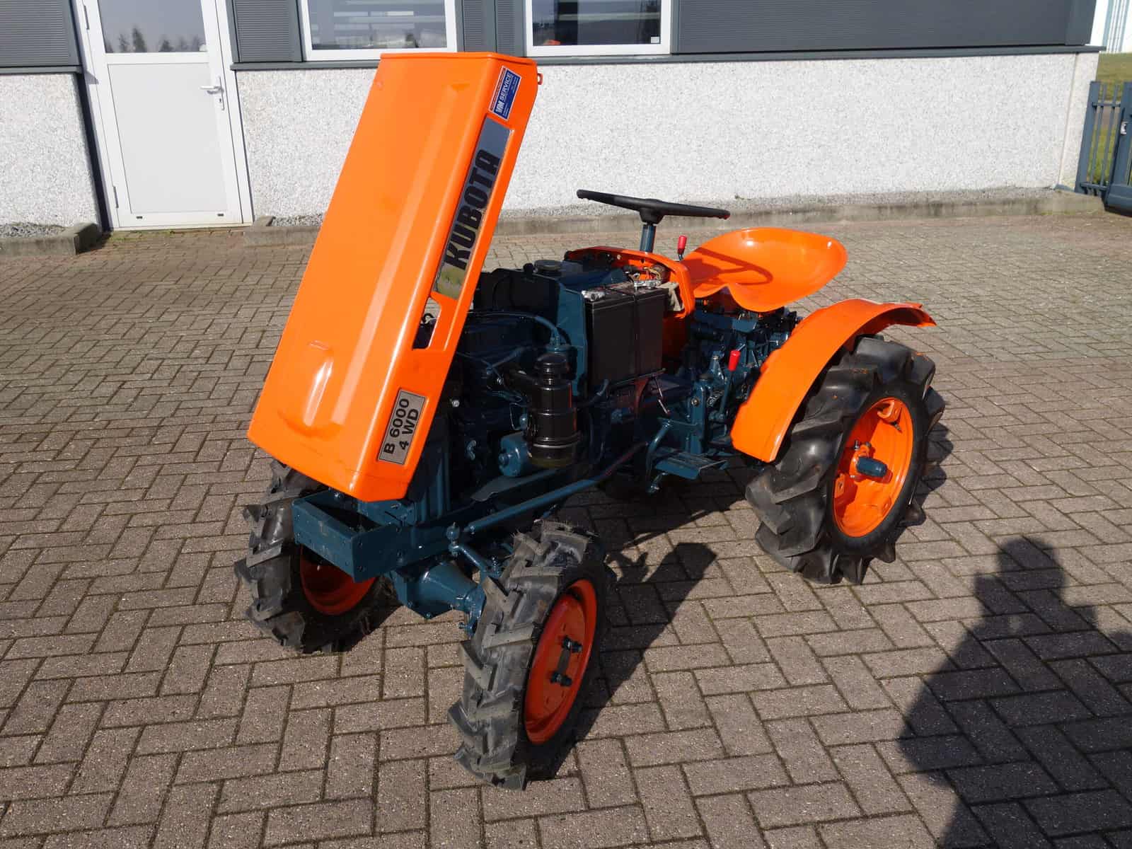 Kubota B6000 4wd compacttrekker. Geringe afmetingen, Grote prestaties, dat is wat past bij deze allround inzetbare minitrekker. Krachtige Dieselmotor, 4wd in- en uitschakelbaar, Complete driepuntshef, Nieuwe Voorbanden, Hoge- en Lage gearing, Sper, Aftakas, enz. Trekker is voorzien van algehele servicebeurt en staat klaar voor gebruik.