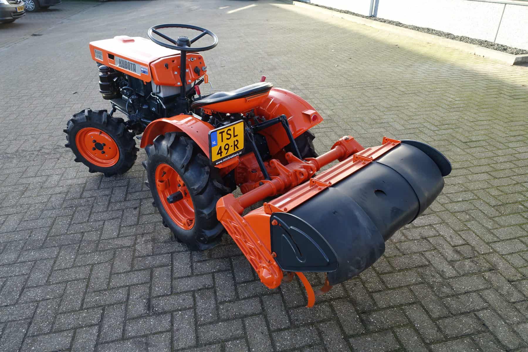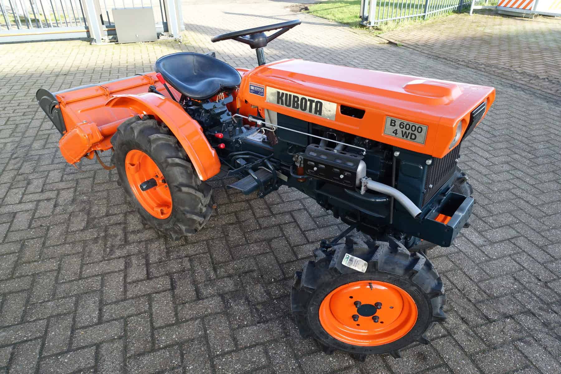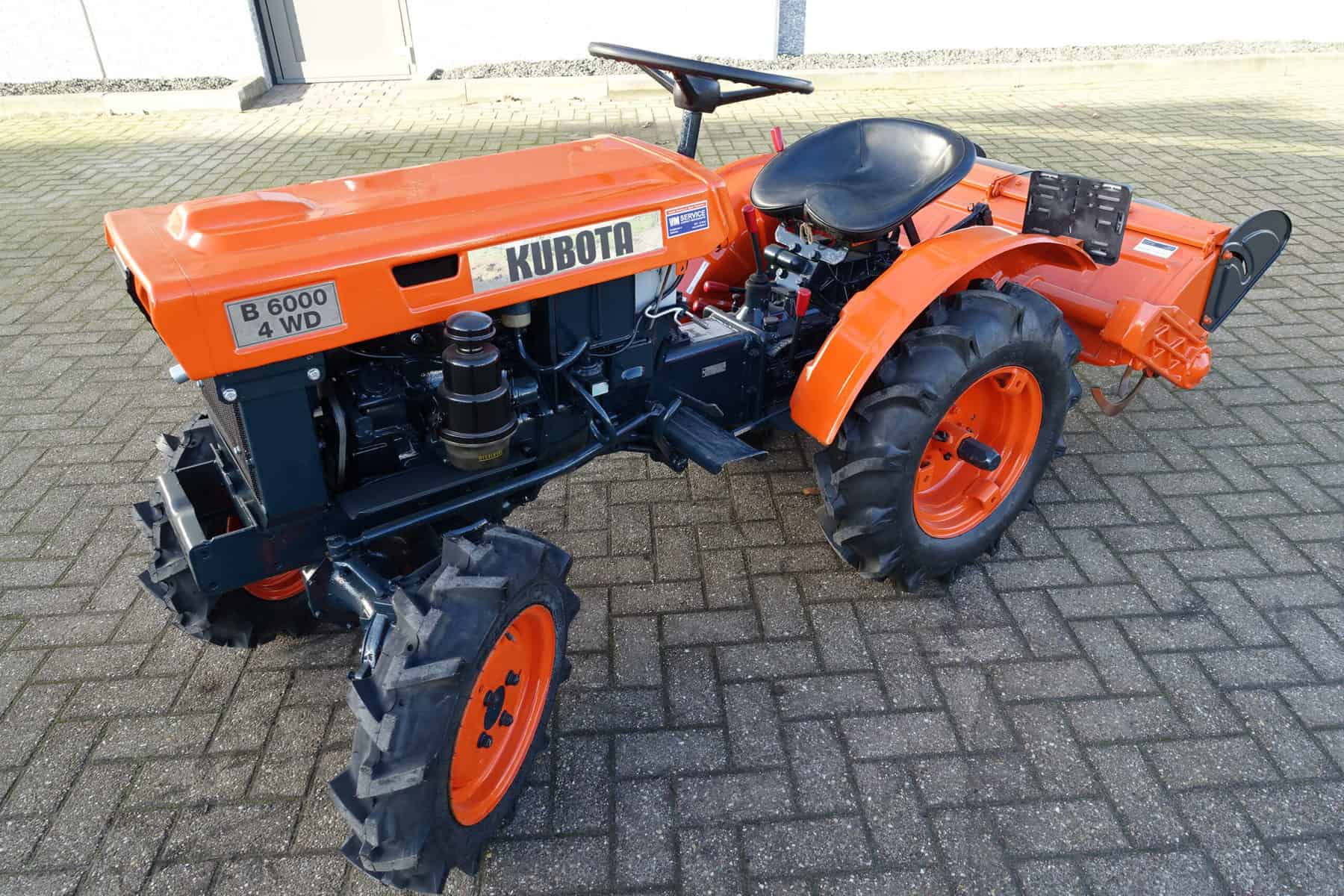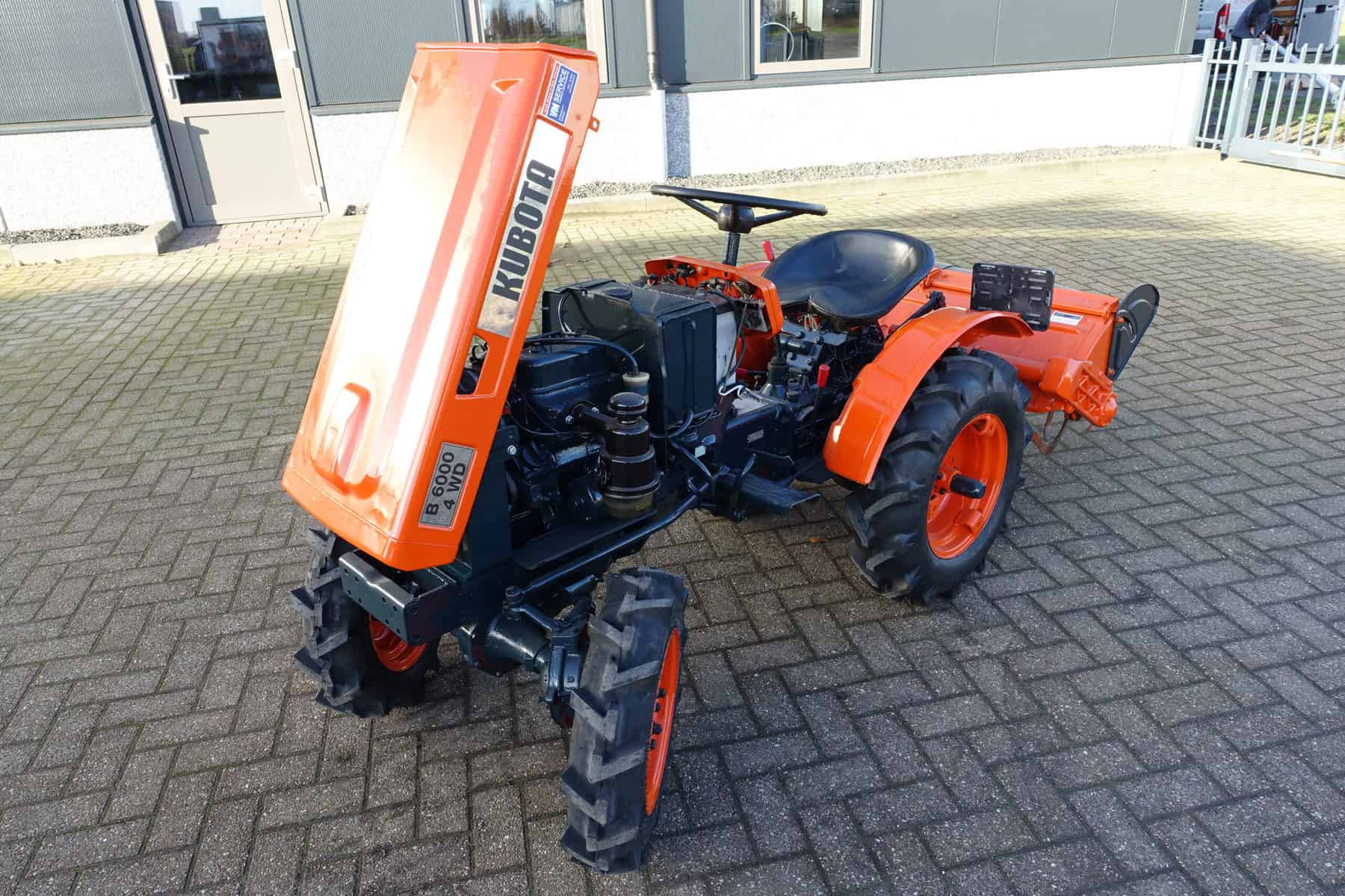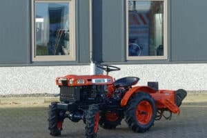Kubota B6000 4wd compacttrekker. Geringe afmetingen, Grote prestaties, dat is wat past bij deze allround inzetbare minitrekker. Krachtige Dieselmotor, 4wd in- en uitschakelbaar, Hoge- en Lage gearing, Sper, Aftakas, enz. Compleet met 85cm brede grondfrees.