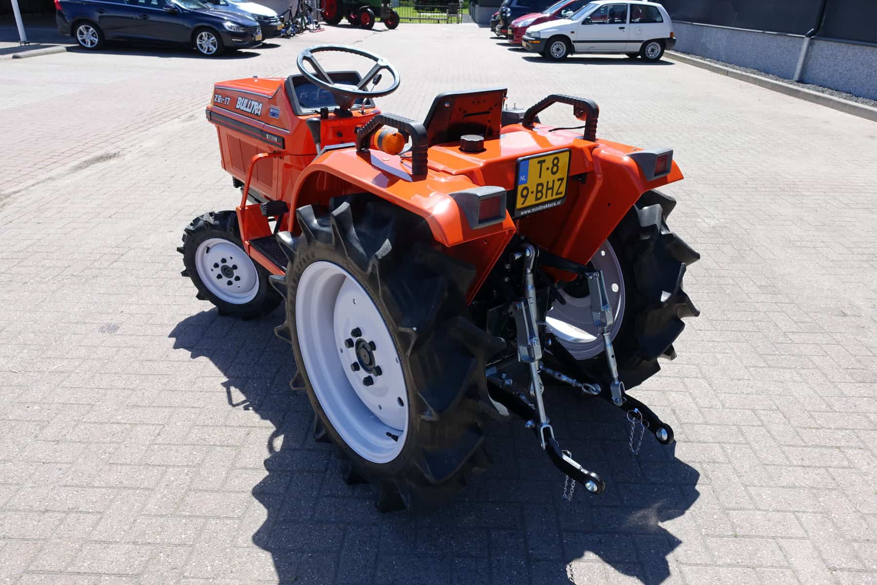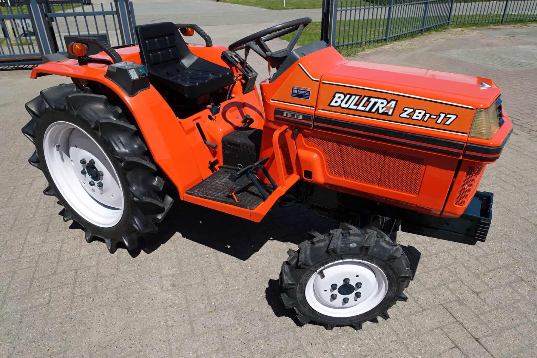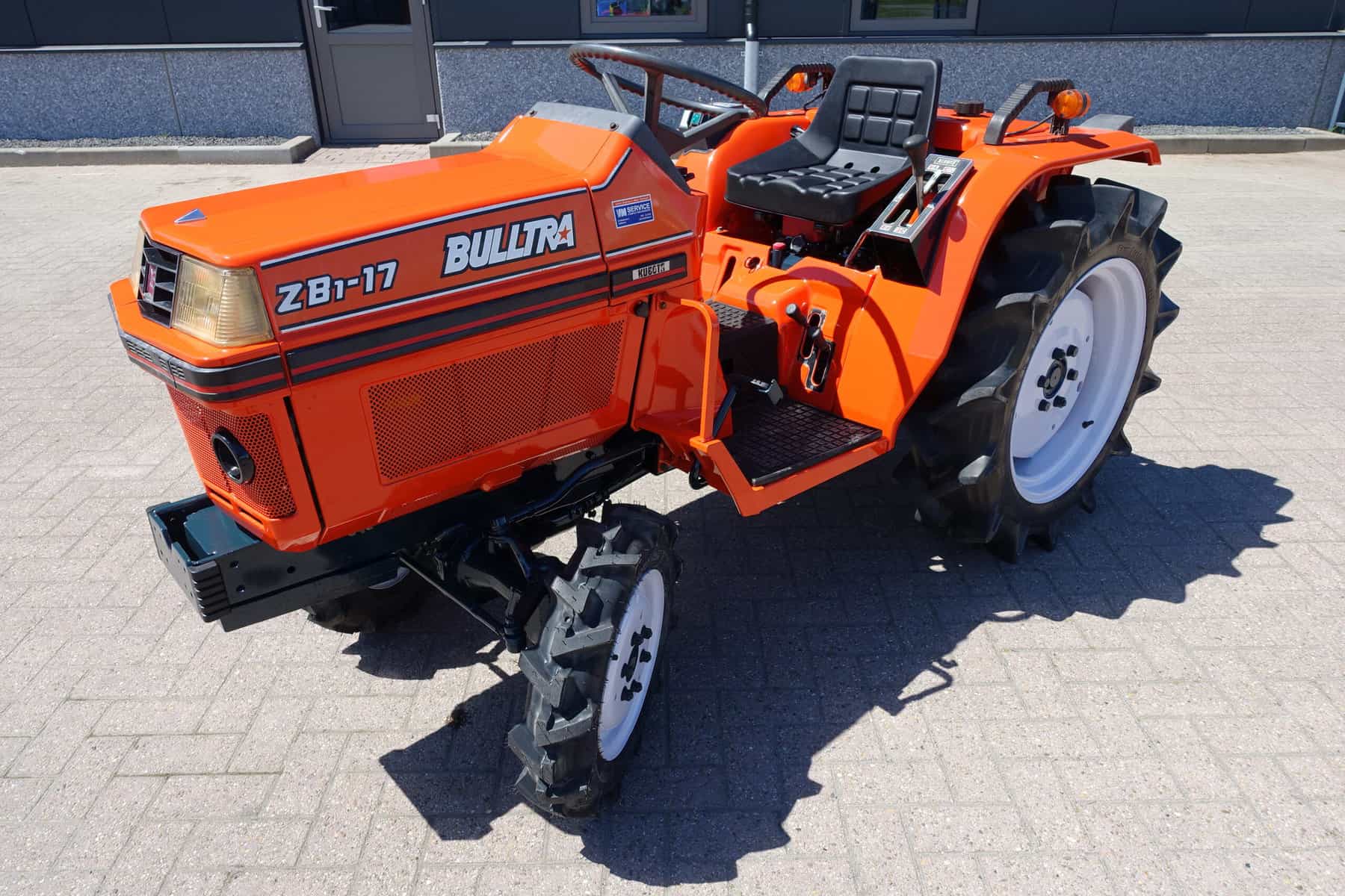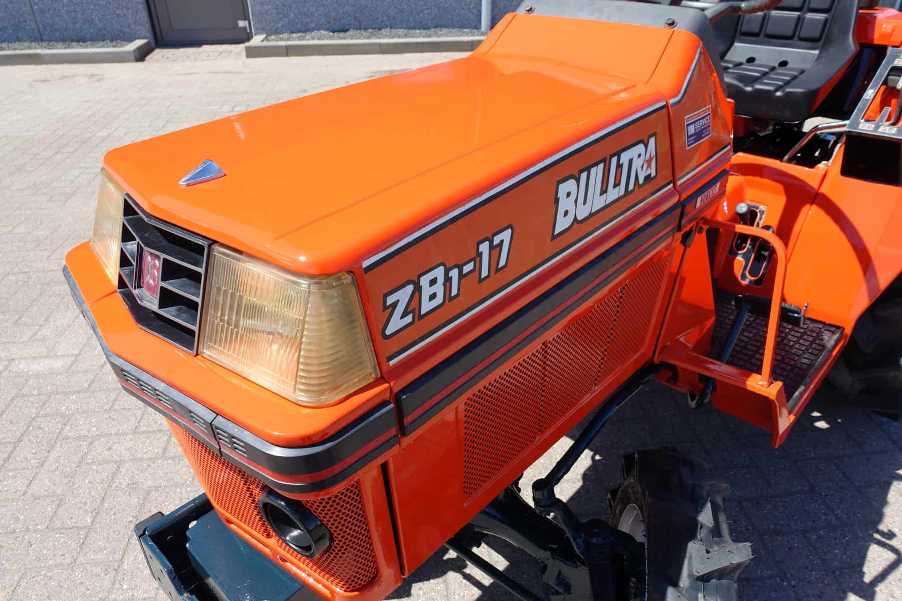 De Bulltra B1-17 4wd van Kubota heeft een aantal grote pluspunten, te weten; Krachtige 21 Pk 3 cilinder dieselmotor, Grote wielen voor een grote tractie en toch maar 110cm smal!! In combinatie met de superkruipversnelling een ideale trekker om te spitten, frezen, planten, etc. Externe hydraulische aansluitingen (dubbelwerkend hydraulisch ventiel met twee aansluitingen), Een hele lijst van zaken welke deze trekker maken tot een allround inzetbare compacttrekker. Degelijke bouw, beugel, hef, aftakas aan de achterzijde. Slechts 1473 draaiuren. Voorzien van algehele servicebeurt.