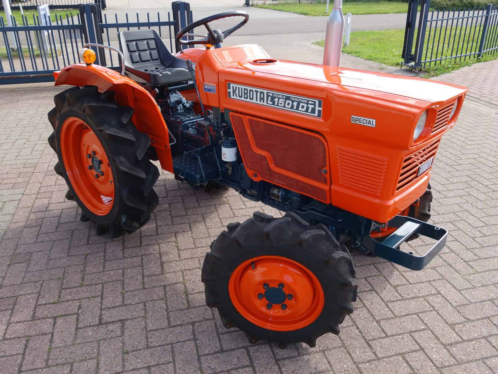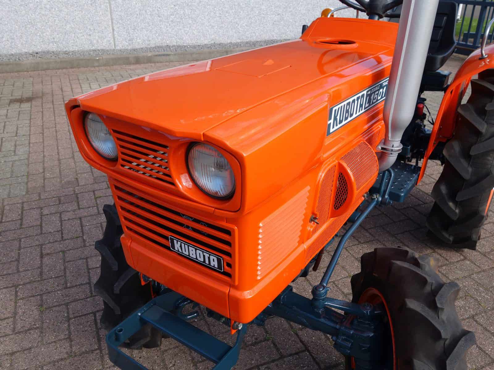 Liefhebbers opgelet; Een uniek nette Kubota L1501 4wd! Met maar 0852 Draaiuren. Geliefd door de robuuste en sterke bouw en praktisch onverwoestbare motoren. Krachtige 18 Pk 2 cilinder lange slag dieselmotor. Dit type lange slag motoren hebben een uitzonderlijk hoog koppel (aandrijfkracht). Zware hef, aftakas en ondertrekhaak aan de achterzijde. Groot hefvermogen doordat de trekker zelf vrij lang is en daardoor een hoog contragewicht heeft. Voorzien van algehele servicebeurt.