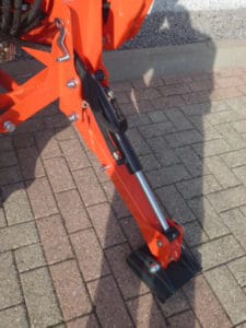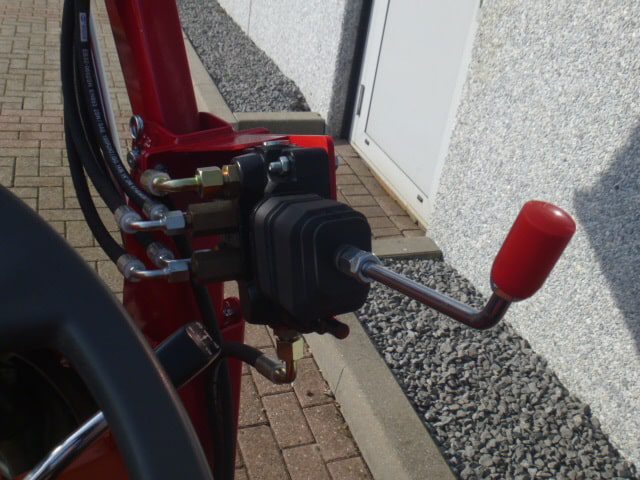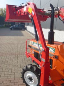 Aan de voorzijde voorzien van nieuwe afkoppelbare voorlader waardoor de gehele voorlader eenvoudig is af- en aan te koppelen. Dubbelwerkdend hydraulisch systeem waardoor er naast het heffen ook naar beneden gedrukt kan worden. Hierdoor kan de bak altijd goed vol geschept worden.
