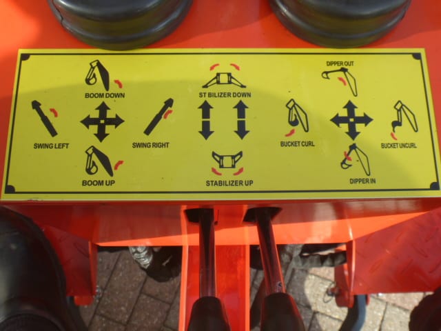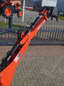 Aan de achterzijde voorzien van nieuwe Backhoeloader / Graafarm. Groot bereik en een groot hefvermogen. Geheel eigen hydraulisch systeem, aftakas aankoppelen en klaar. Kruishandlebediening (joystickbediening) De bak is voorzien van tanden om de grond ook los te kunnen maken. Tevens leverbaar met brede graafbak.