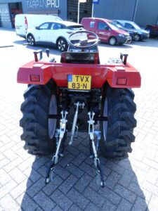 Nieuwe set brede tractiewielen, dat is wat deze trekker bijzonder maakt zowel voor als achter voorzien van nieuwe wielen. Tractiewielen, ook wel Terrabanden genoemd, breed, lage nok, afgeronde ver doorlopende lage nok. Zodat de ondergrond zo min mogelijk beschadigd wordt en toch onder alle omstandigheden een goede tractie gewaarborgd blijft. Een zeer mooie combinatie met zeer weinig draaiuren, maar 1252!! Met ruim 19 Pk voldoende krachtig voor b.v. een maaidek van 150 cm. Trekker heeft hef en aftakas aan de achterzijde. Schakelpook aan de zijkant waardoor een ruime opstap ontstaat. Keurige trekker voorzien van algehele servicebeurt. Klaar voor gebruik en direct inzetbaar.