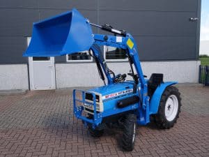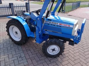 Gebruikte Mitsubishi MT1601 4wd trekker met een nieuwe voorlader. De voorlader is voorzien van het zogenoemde snelwisselsysteem waardoor de gehele voorlader eenvoudig afgekoppeld kan worden. Krachtige 19 Pk sterke (uniek met deze geringe afmetingen) drie cilinder dieselmotor met maar 0466 draaiuren! Een hoge- en lage gearing 4wd. Hef en aftakas aan de achterzijde. De grote pluspunten aan deze trekker zijn de grote achterwielen, daardoor heeft de trekker een zeer grote tractieoverbrenging op de ondergrond, zijschakeling waardoor een ruime opstap.