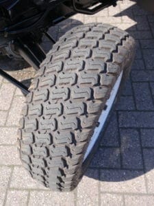 Kenmerkend voor deze bijzonder Mitsubishi MT20 4wd zijn de nieuwe brede gazonbanden.