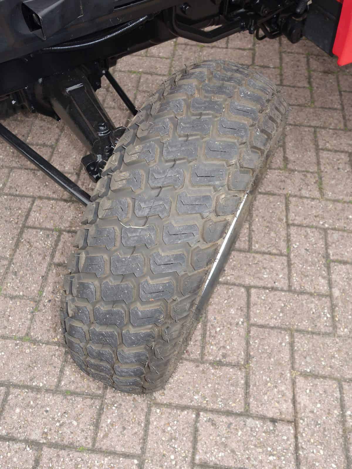 Kenmerkend voor deze bijzonder Mitsubishi MT20 4wd zijn de nieuwe brede gazonbanden.