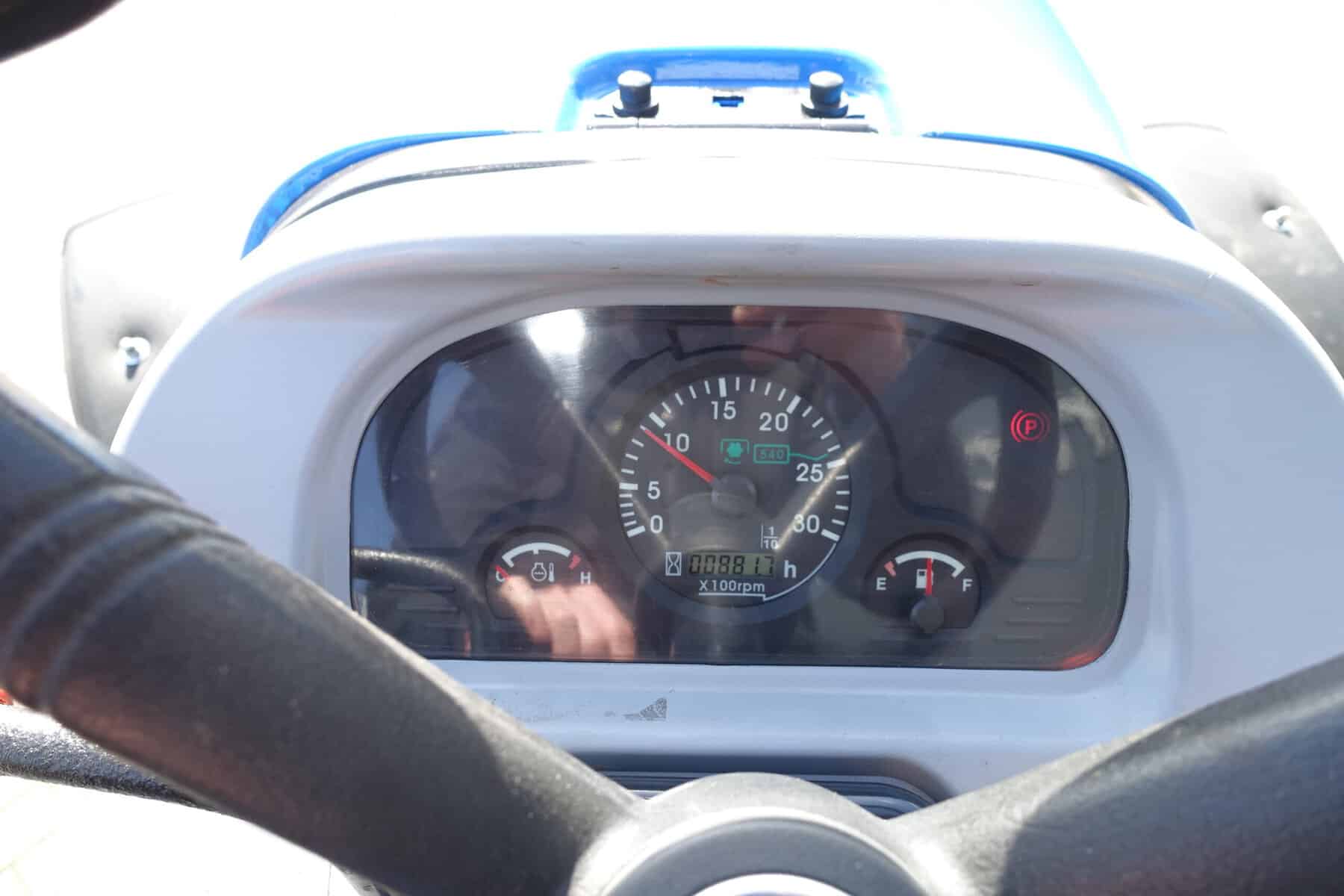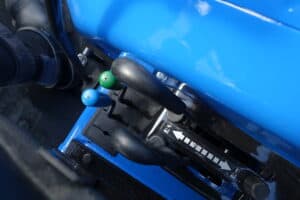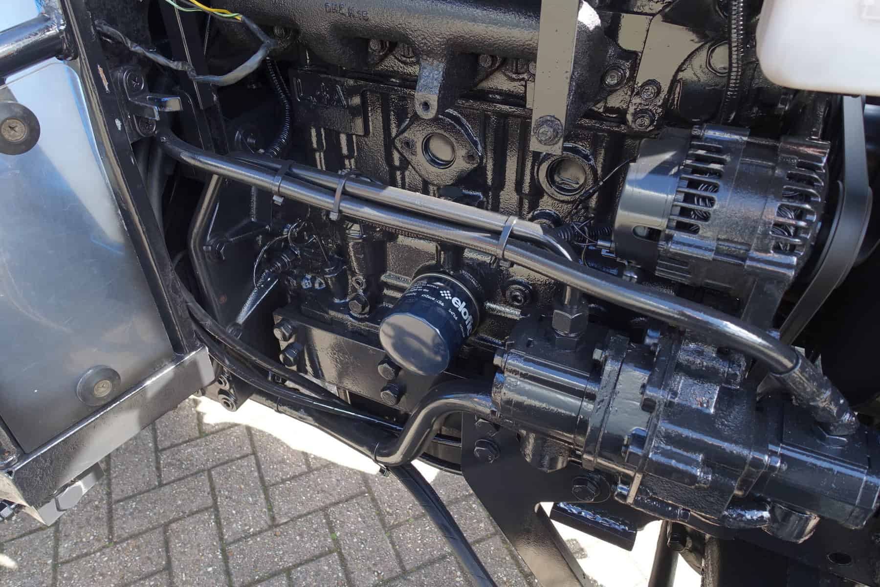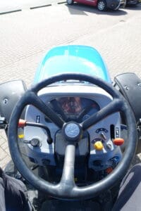 Unieke combinatie met hydraulische fronthef en maximaal brede banden.