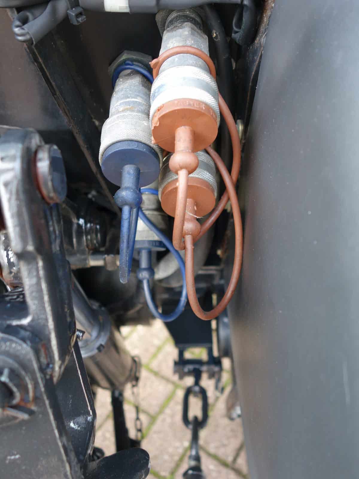 - Drie dubbelwerkende hydraulische ventielen aan de achterzijde (zes aansluitingen)
