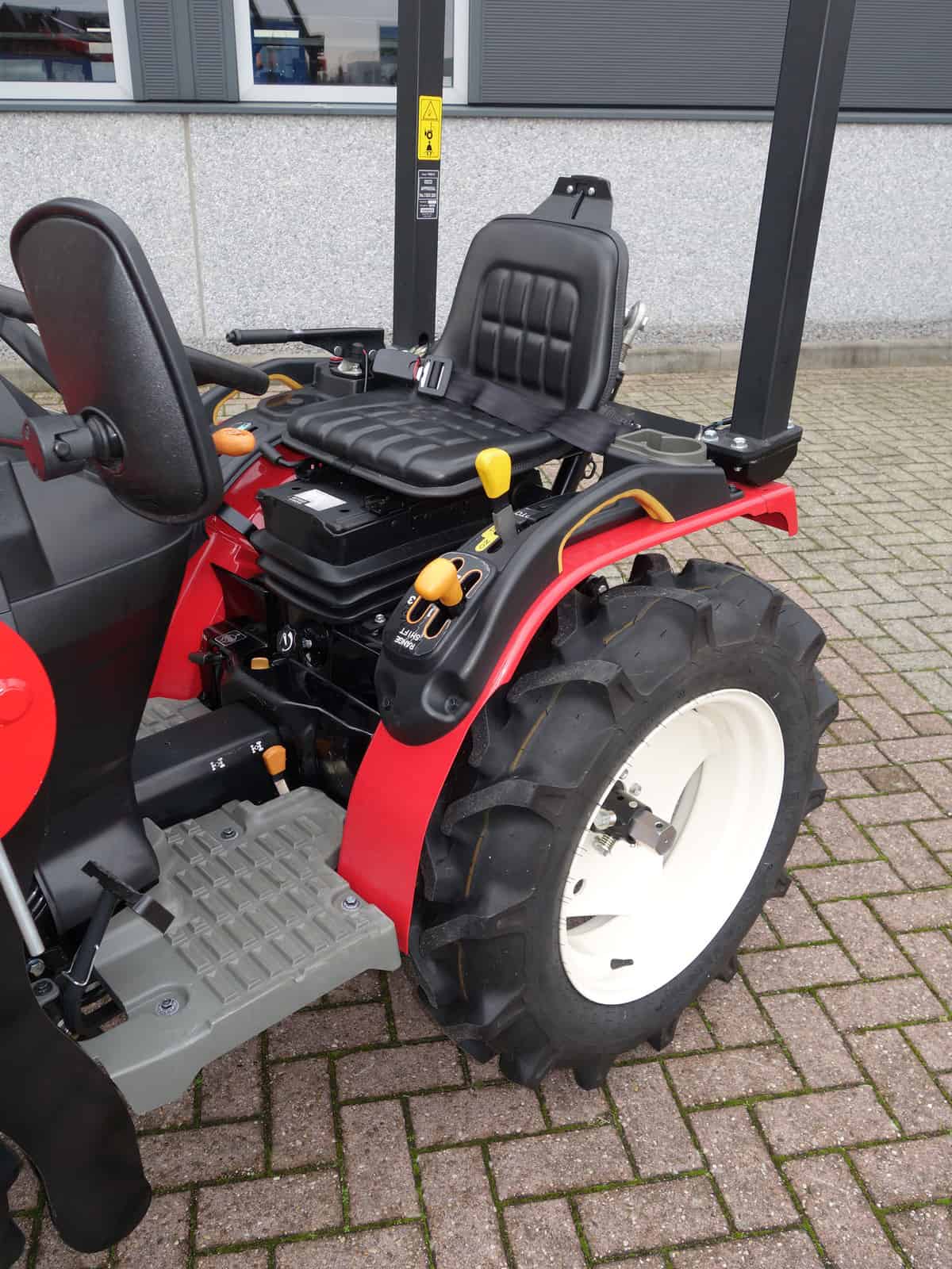 De nieuwste generatie proffesionele YANMAR GK-160 tractoren blinken uit in design, compactheid compleetheid en overzichtelijkheid! Om te beginnen het DESIGN, oordeelt u zelf over uiterlijk, wij zeggen hier unaniem; Smaakvol ontworpen met een hoog afwerkingsniveau, goed gedaan YANMAR!! Het meest elegant zijn wel de schijnwerpers aan de voorzijde in de frontgrill, stoer en zeer functioneel. Dan de COMPACTHEID, De ontwerpers hebben naast het design ook grote aandacht geschonken aan de compactheid en ergonomische plaatsing van de diverse bedieninghandles. Doorontwikkeling levert dit technisch hoogstaande eindproduct, en ook op dit punt; Kijk en vergelijk!! Ten derde de COMPLEETHEID van trekker is zeer groot doordat de trekker is uitgevoerd met de volgende opties; Fronttrekhaak, Stuurbekrachtiging, Omkeerschakeling onder het stuur, Zijschakeling, Hoge en Lage gearing. In- en Uitschakelbare 4wd, Hef, Aftakas, Topstang, Ondertrekhaak, Opklapbare Veiligheidsbeugel, Wegverlichting, Spiegel, Aanhangwagenverlichtingsstekker, Grote wielen, enz. enz. Tot slot de OVERZICHTELIJKHEID dit is eigenlijk de samenvatting van hetgeen hierboven omschreven, het eindproduct, de YANMAR GK-160 POWER STEERING. Nog even wat technische details op een rijtje; Krachtige 16 Pk 3 cilinder dieselmotor, Direct ingespoten (starten zonder te gloeien). Hefvermogen achterzijde 550 Kg.